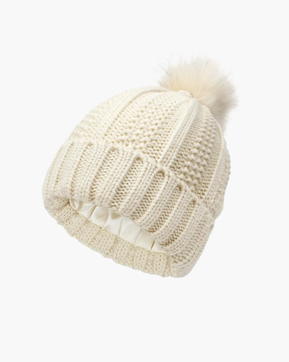 Sa doublure satinée douce protège les cheveux du frottement et préserve leur brillance, tandis que le pompon moelleux apporte une touche chic et hivernale.