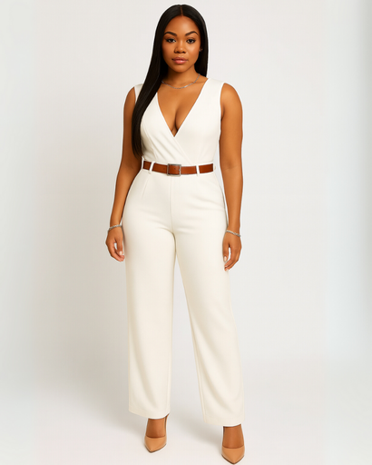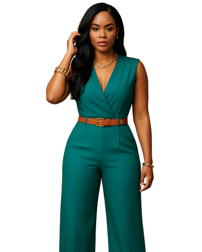 Cette combinaison élégante pour femme offre une coupe flatteuse avec une ceinture à la taille pour souligner la silhouette. Les jambes larges apportent une touche d’élégance tout en assurant un grand confort. Idéale pour une soirée ou une occasion spéciale.