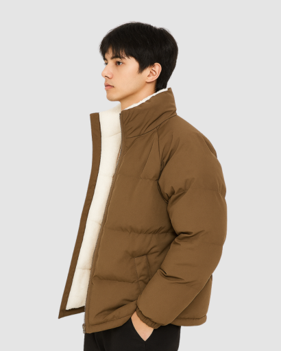 Sa coupe matelassée, son col montant et sa doublure effet sherpa en font un allié idéal contre le froid urbain.