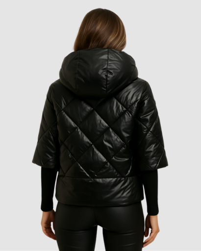 Doudoune Matelassée à Manches Courtes avec Capuche – Élégance Décontractée & Confort Hivernal