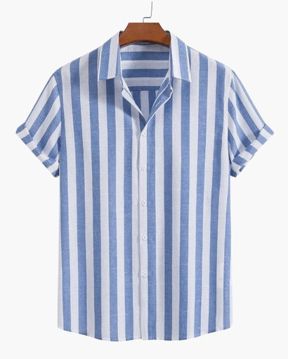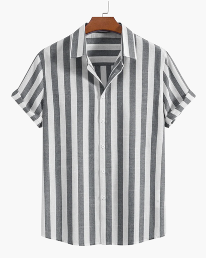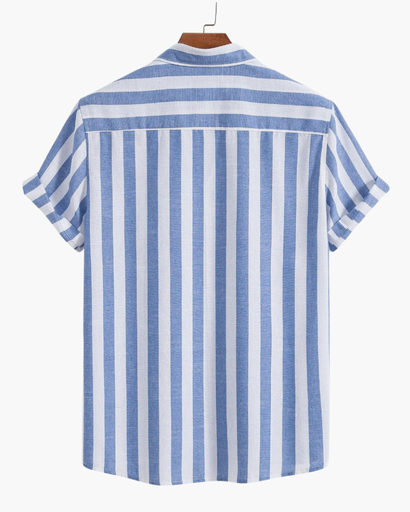 Blouse rayée pour homme – Col officier, manches courtes