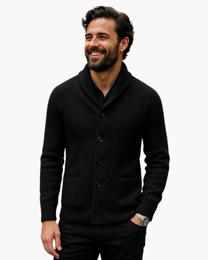 Un gilet raffiné pour homme, doté d’un col châle élégant et d’une fermeture à boutons sur le devant. La maille texturée et les deux poches plaquées ajoutent une touche pratique et sophistiquée. Une pièce polyvalente qui s’adapte aussi bien aux tenues décontractées qu’aux looks plus habillés.