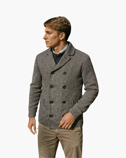 Un gilet pour homme au style raffiné, doté d’un col châle élégant et d’une fermeture croisée à double rangée de boutons. Sa coupe structurée et ses finitions soignées lui confèrent une allure moderne et polyvalente, idéale pour compléter une tenue habillée ou décontractée.