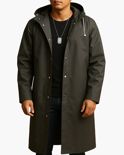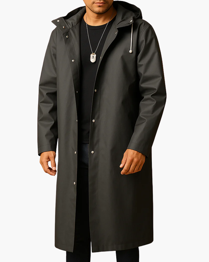 Ce manteau imperméable long pour homme allie protection et élégance. Confectionné dans un tissu déperlant, il vous garde au sec lors des journées pluvieuses. La capuche ajustable avec cordons de serrage offre une protection supplémentaire contre le vent et la pluie. Fermeture à boutons-pression sur le devant et coupe droite pour un confort optimal sans limiter les mouvements. Un choix pratique pour un usage quotidien par temps variable, parfait pour rester élégant et au sec en toutes saisons.