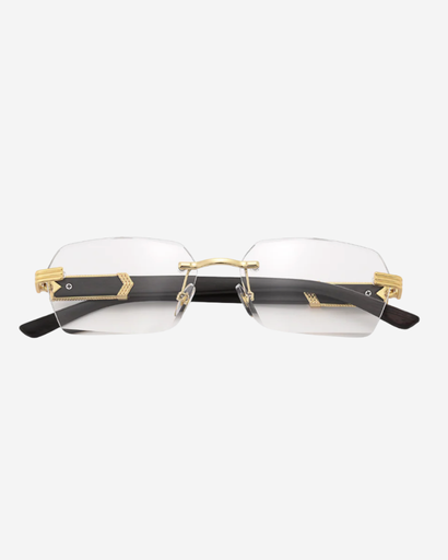 Design : Verres dégradés, branches avec détails dorés, structure sans monture