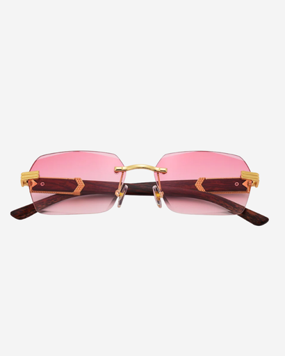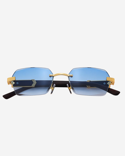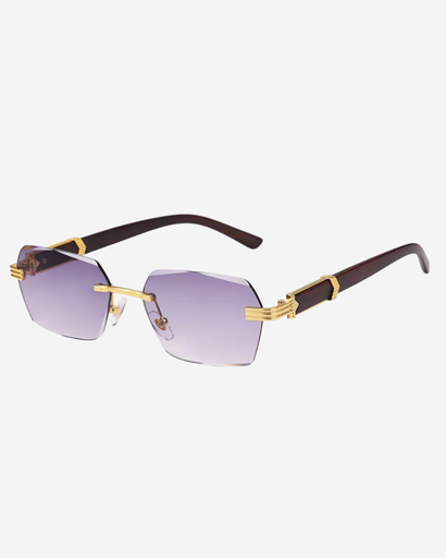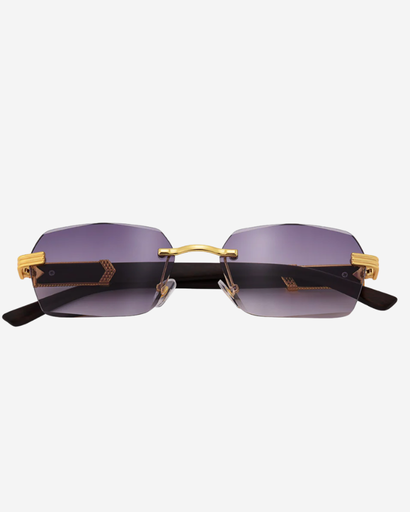 Lunettes de soleil au design raffiné, avec verres dégradés et branches ornées de détails dorés. Leur structure sans monture apporte une touche moderne et légère, idéale pour compléter une tenue élégante. Protection UV pour un usage quotidien confortable.