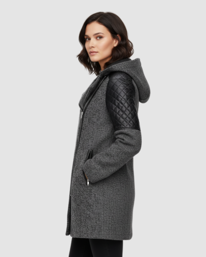 Ce manteau pour femme est la parfaite alliance entre chaleur, style et praticité. Inspiré du design motard moderne, il se distingue par ses détails matelassés sur les épaules et les manches, ainsi que sa fermeture asymétrique zippée. La capuche intégrée ajoute une protection supplémentaire contre le froid, tandis que la coupe ajustée souligne élégamment la silhouette. Idéal pour les journées fraîches, ce manteau offre un look urbain et élégant en toutes circonstances.