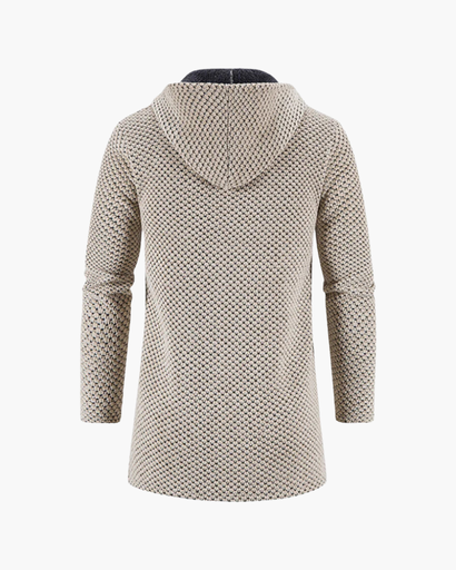 Manteau au design moderne avec motif texturé et capuche intégrée. Sa coupe droite est complétée par une fermeture zippée sur le devant et des poches discrètes. Les finitions soignées renforcent l’allure élégante et contemporaine.