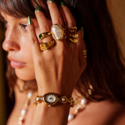 Disponible en plusieurs coloris pour s’adapter à tous les styles : doré perlé, doré vert émeraude ou argenté nacré.