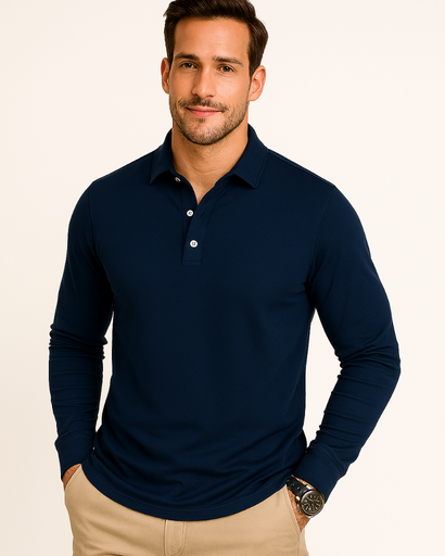 Polo à Manches Longues Old Money pour Homme – Col Classique et Patte à Boutons