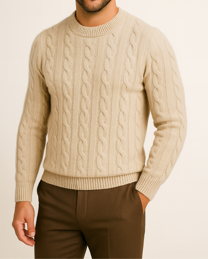 Pull chaud et élégant avec texture torsadée classique. Confectionné dans une matière douce au toucher, idéale pour les saisons fraîches. Design intemporel, coupe moderne – parfait pour une tenue habillée ou décontractée. Un essentiel de garde-robe inspiré du style cachemire.