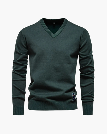 Pull homme à col en V et finitions côtelées