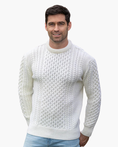 Un pull intemporel inspiré du tricot traditionnel irlandais Aran. Confectionné avec un motif torsadé raffiné, il allie élégance et authenticité. Sa coupe droite et son col rond offrent un confort optimal. Un essentiel classique qui traverse les saisons avec style.