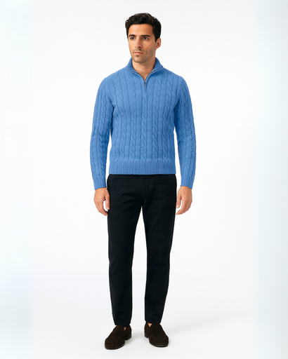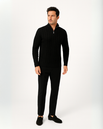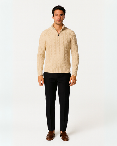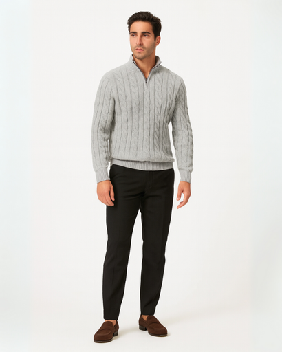 Un pull intemporel pour homme, doté d’un col zippé qui ajoute une touche moderne à son allure élégante. Conçu pour compléter une garde-robe classique et raffinée, il se porte facilement en superposition lors des journées plus fraîches. Sa coupe équilibrée et ses finitions soignées permettent de l’associer aussi bien à des tenues décontractées qu’à des looks plus formels.