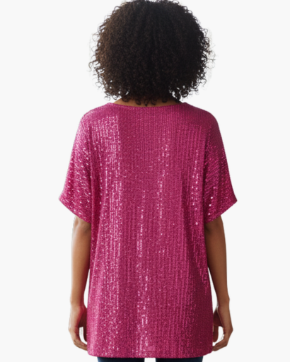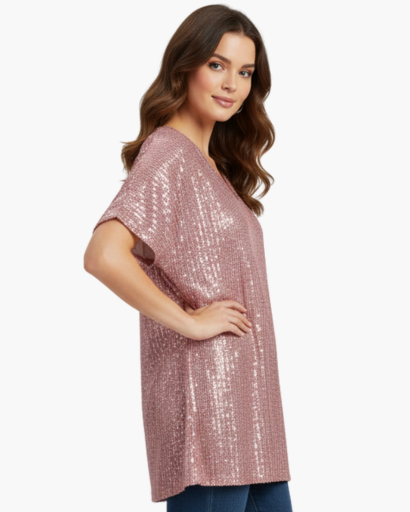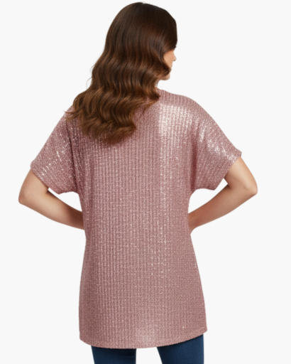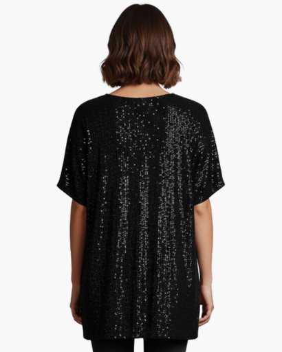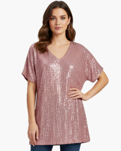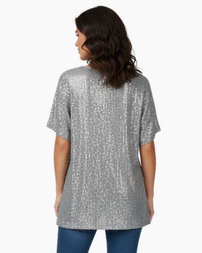 Ce haut scintillant apporte une touche de glamour chic à vos tenues de soirée. Sa coupe fluide et son col V mettent en valeur la silhouette tout en offrant un confort agréable. Idéal pour les fêtes, les cocktails ou les événements habillés, il se porte facilement avec un jean, un pantalon élégant ou une jupe ajustée.