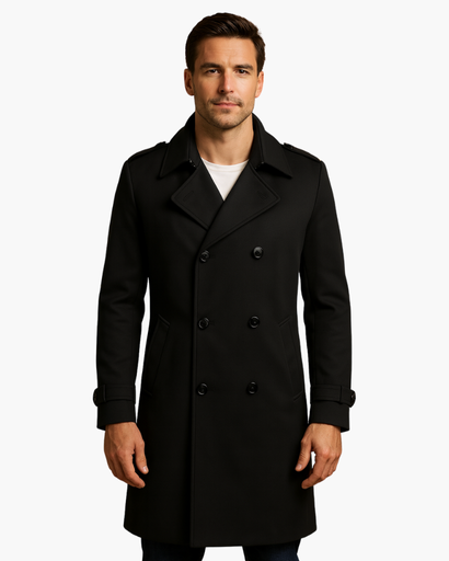 Un trench long pour homme au style intemporel, rehaussé d’un double boutonnage classique et d’une coupe droite élégante. Le col à revers et les pattes d’épaules apportent une touche sophistiquée. Avec ses finitions soignées et ses détails discrets, ce manteau est une pièce idéale pour compléter une tenue habillée ou urbaine.