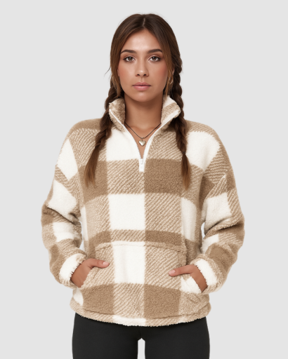 Veste en Polaire à Carreaux – Douceur et Style Décontracté pour Femme