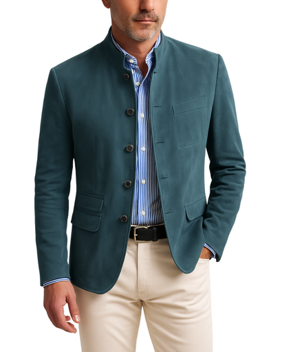 ette veste pour homme en aspect suédé combine modernité et élégance intemporelle. Avec son col droit raffiné et sa fermeture à boutons, elle apporte une touche chic et sophistiquée. Les poches pratiques à l’avant et sur la poitrine ajoutent une fonctionnalité discrète. Grâce à sa coupe confortable, elle se porte aussi bien pour des occasions habillées que pour un look casual-chic du quotidien. Un indispensable pour une garde-robe masculine élégante.