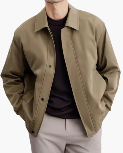 Veste mi-saison pour homme avec coupe droite et fermeture par boutons-pression. Conçue pour un look épuré et moderne. Facile à combiner, idéale pour les journées fraîches. Doublure confortable, finition soignée.